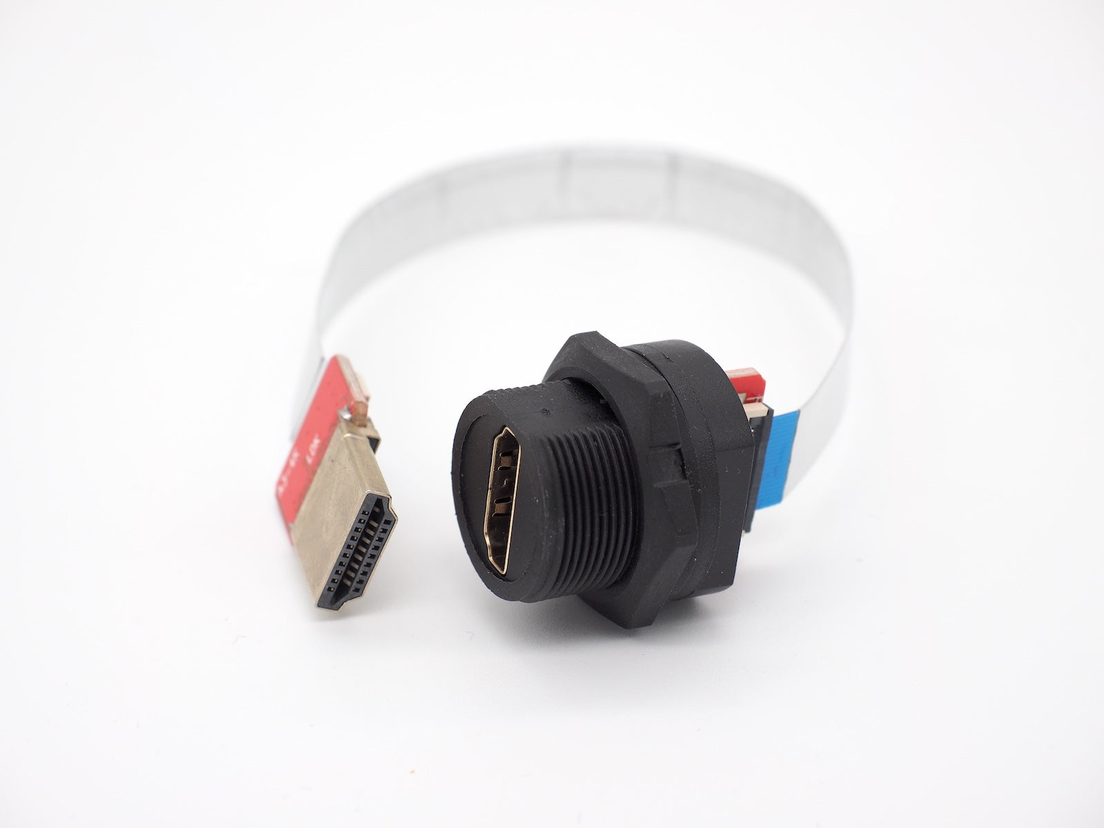 HDMI Panel Mount Connector to Straight HDMI Male FFC Cable 0.2m