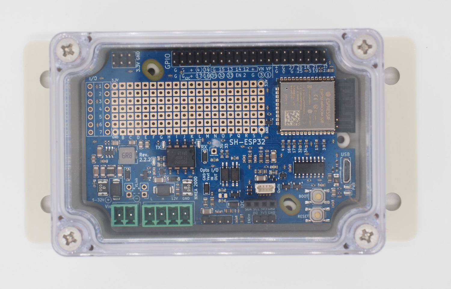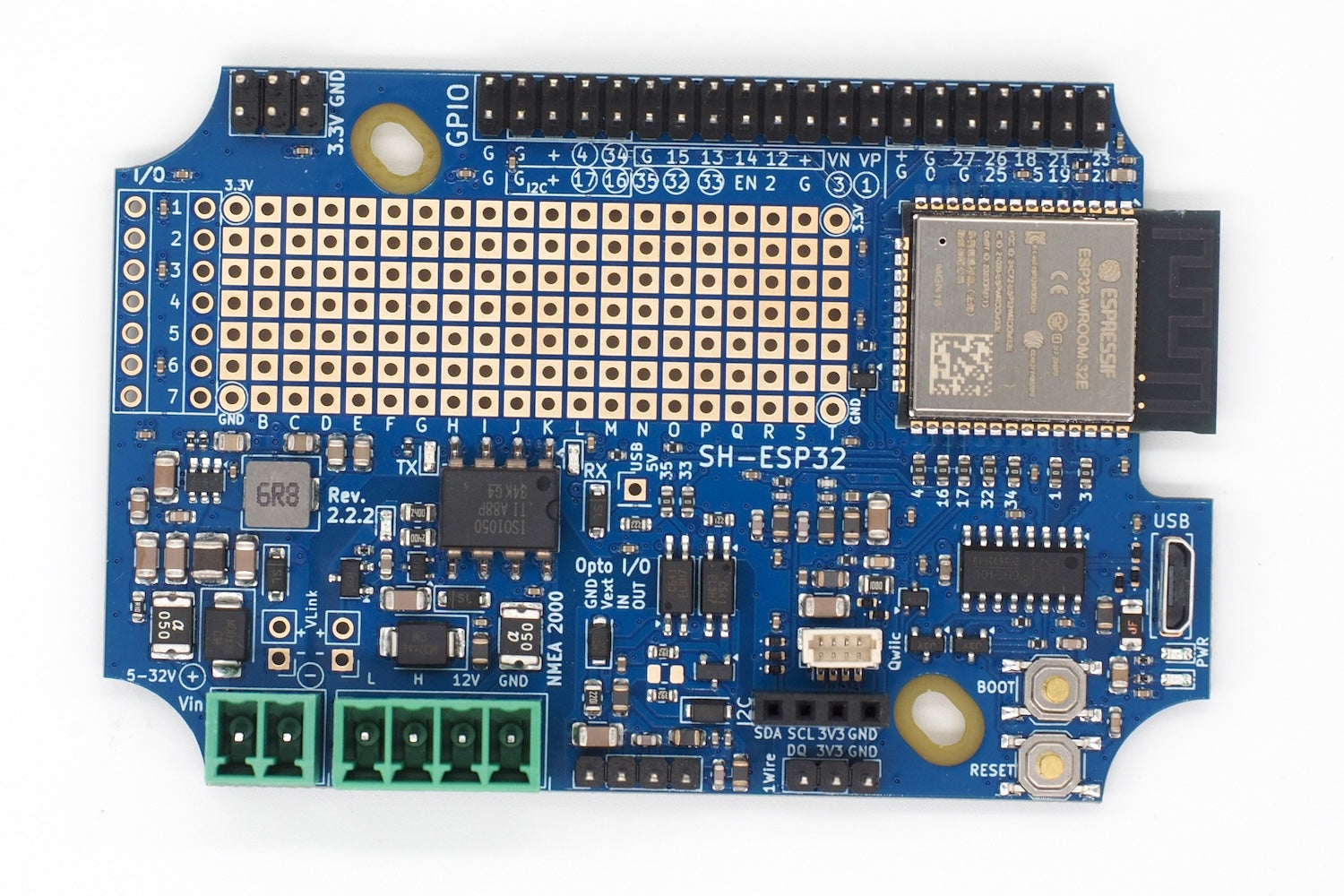 SH-ESP32 is the perfect sensor development board for marine and automotive environments. It allows you to easily and safely integrate different sensors to your boat electronics systems, whether you are using Signal K or NMEA 2000 as your boat electronics backbone. It has native NMEA 2000 compatible CAN bus connectivity.