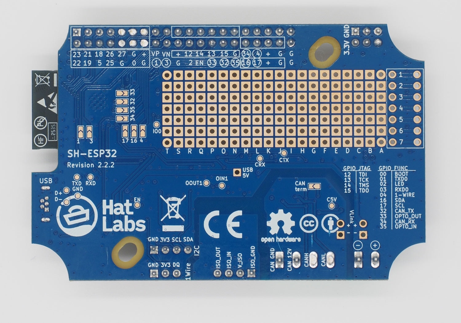 - SH-ESP32 rev.2 board with all connectors soldered in place